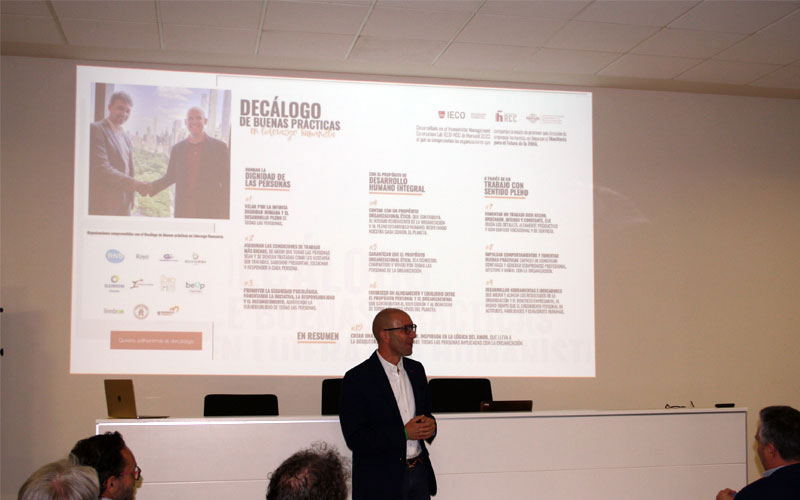 Un taller Internacional de Dirección Humanista, celebrado en el Real Colegio Complutense de Harvard por el Instituto para la Ética en la Comunicación y las Organizaciones IECO de la Universitat de València donde se sentaron las bases de un Decálogo de Buenas Prácticas, diez compromisos organizativos al que puedan sumarse aquellas empresas con un modo humanista de concebir a las personas, al propósito de su organización, y a los modos de ser productivos y alcanzar beneficios.